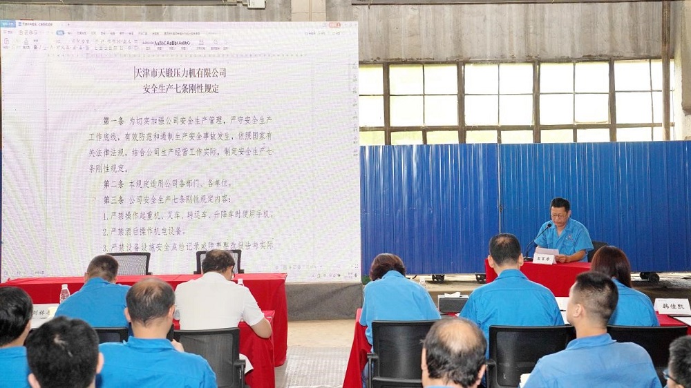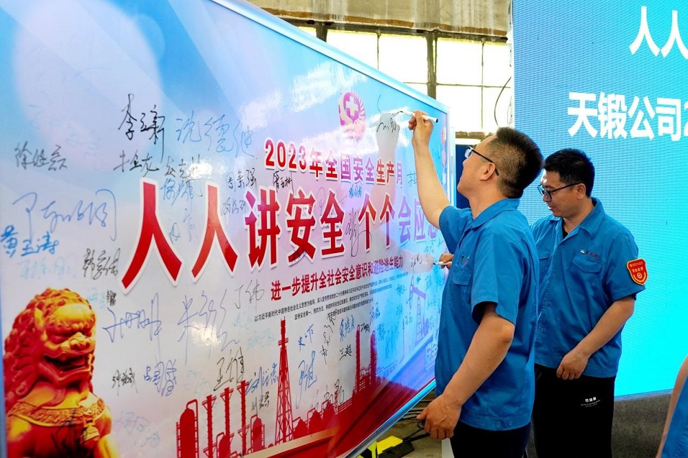 6月6日上午,天鍛公司在機(jī)加工車(chē)間舉行2023年“安全生產(chǎn)月”活動(dòng)啟動(dòng)大會(huì)。副總經(jīng)理張敬波主持會(huì)議,宣讀了天鍛公司2023年“安全生產(chǎn)月”活動(dòng)總體實(shí)施方案和重大事故專(zhuān)項(xiàng)排查整治行動(dòng)方案??偨?jīng)理劉林志宣讀了《天鍛公司安全生產(chǎn)七條剛性規(guī)定》,并代表公司與天津東方泰瑞科技有限公司簽署了安全生產(chǎn)咨詢服務(wù)合同。
