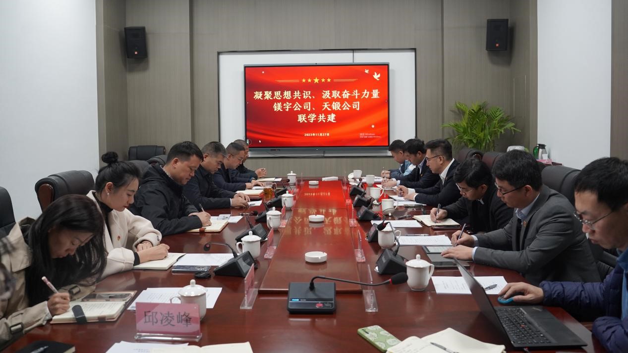 公司領(lǐng)導(dǎo)一行來到湖南鎂宇科技公司溝通交流有關(guān)項(xiàng)目進(jìn)展情況,并與鎂宇公司聯(lián)合開展了“凝聚思想共識(shí)、汲取奮斗力量”主題教育黨課,深入理解習(xí)近平新時(shí)代中國特色社會(huì)主義思想的世界觀和方法論,積極研討如何貫徹落實(shí)總書記對(duì)新時(shí)代新征程國資央企工作的最新要求。