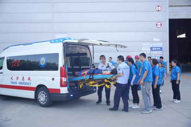 演練結束后,開展了應急救援實操活動。在北辰區(qū)消防救援站專業(yè)人員的指導下,機床公司、機床研究院、天津一機及天鍛公司員工積極參與,順利完成了包括防煙面罩和消防服穿戴、擔架救人、消防滅火等實操活動。