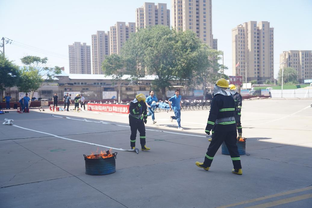 演練現場模擬由起重傷害引發(fā)的火災場景。公司董事長、黨委書記劉國福接到報告后立即啟動公司應急預案,成立現場指揮部并擔任總指揮,指定公司總經理、黨委副書記劉林志擔任副總指揮。按照公司應急預案,現場指揮部發(fā)布各項應急行動指令,各救援組緊張有序地實施應急救援行動。