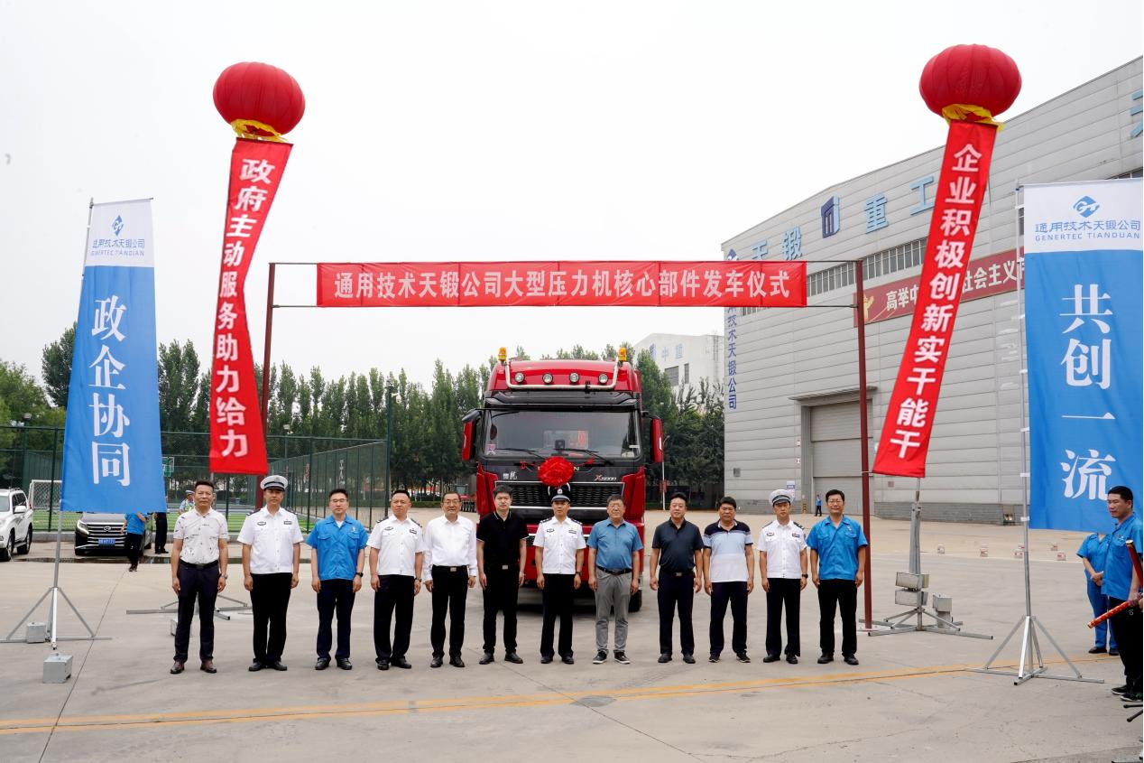 7月1日,公司舉行大型壓力機(jī)核心部件發(fā)車儀式,向黨的103周年華誕和公司68歲生日獻(xiàn)禮。天津市公安交管局副局長(zhǎng)馮國(guó)勝、交通運(yùn)輸委政務(wù)服務(wù)處處長(zhǎng)趙自金、交通運(yùn)輸委設(shè)施管理處二級(jí)調(diào)研員唱潤(rùn)好,北辰區(qū)委常委、組織部長(zhǎng)郭海,北辰區(qū)副區(qū)長(zhǎng)兼公安局長(zhǎng)李暉等有關(guān)領(lǐng)導(dǎo)及公司在津領(lǐng)導(dǎo)、員工代表、媒體朋友共同見證了這一重要時(shí)刻。