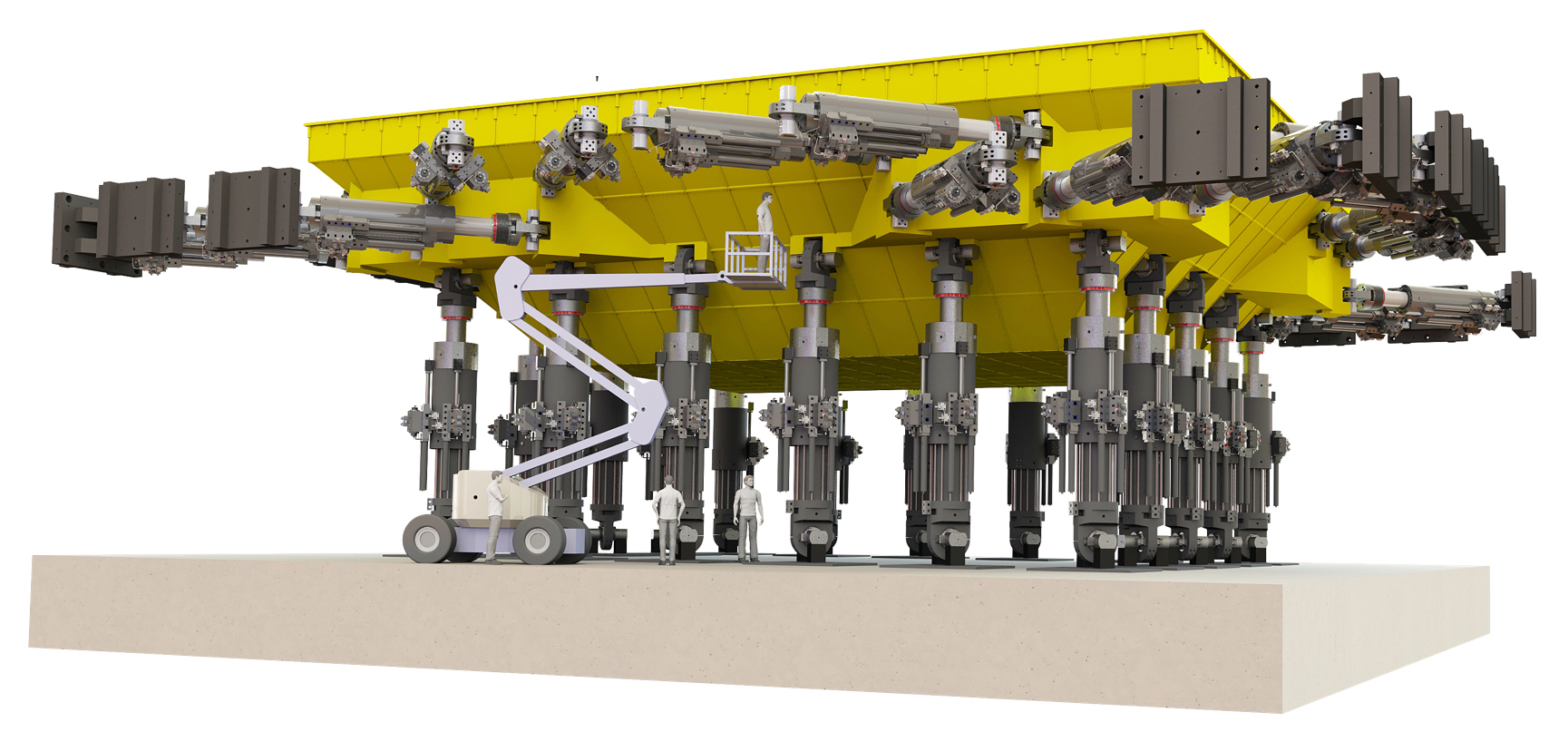 “國家大型地震工程模擬研究設施”是我國地震工程領域國家重大科技基礎設施,由天津大學牽頭,在天津建設。設施建成后,可大幅提升我國防災減災領域原始創(chuàng)新能力,對保障水利、土木、海洋、交通等重大工程的安全具有重要意義。其中,實驗中心的16m× 20m大型振動臺和6m × 6m 水下振動臺臺陣系統(tǒng),是整個試驗裝置中最核心部分。通用技術天鍛公司承擔全部振動臺臺體、液壓系統(tǒng)及輔助機構的開發(fā)與制造,同時負責振動臺設備的安裝與聯(lián)合調試。